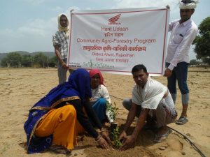 SankalpTaru Foundation is working in the districts of Barmer and Jaisalmer, Thar desert, Rajasthan to support the livelihood of poor farmers by growing trees of varied plant species like Pomegranate, Ber, Lemon and many more in the list. This way our contribution has not only created greenery in this arid region but has also gone a long way in providing livelihood to the poor farmers. We are also instrumental in planting trees in community land and schools located in the region.